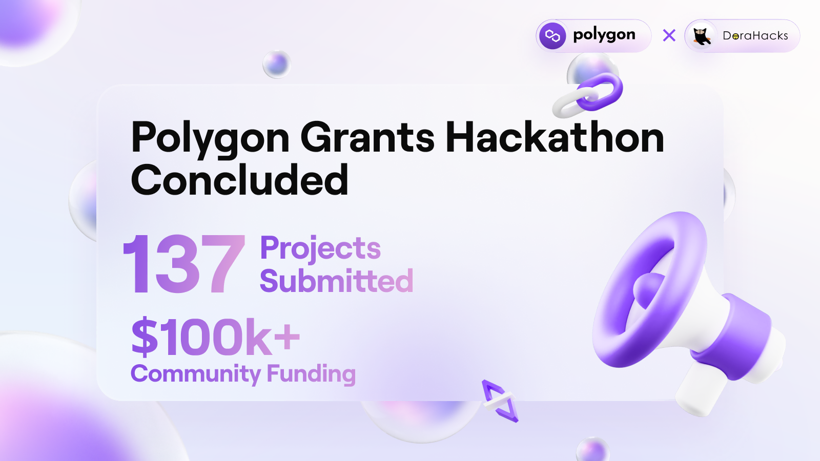 Dorahacks has just successfully hosted the Polygon Grants Hackathon. The 2-month hackathon saw 137 Polygon native projects compete to win $100k in prizes. The prizes were split between the Judge Pool and the Quadratic Funding Pool. Additional funding came via community quadratic voting and resulted in 62,210 $MATIC (~$110K+) donated by the community itself.