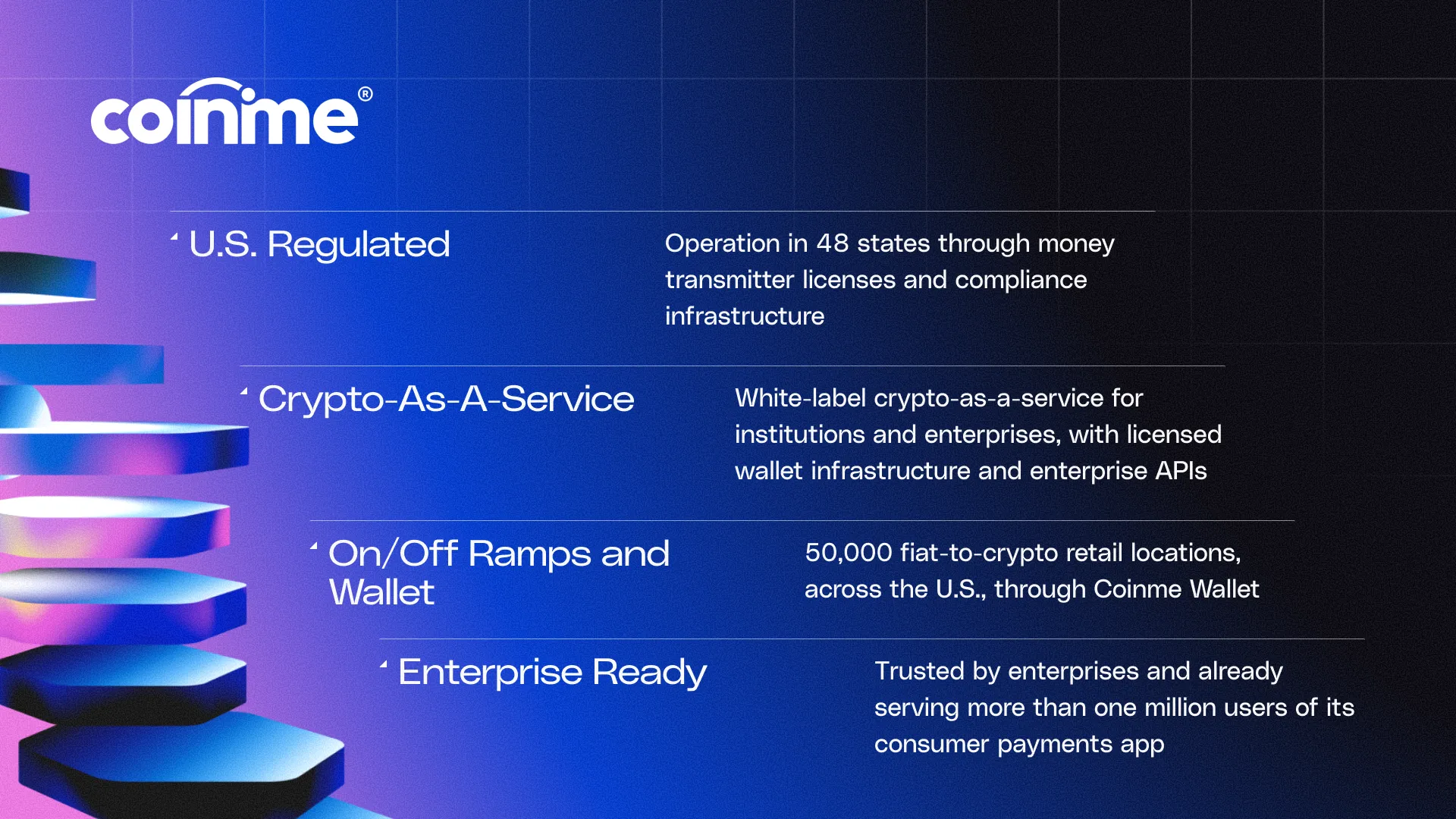 - Coinme brings licensed U.S. fiat on- and off-ramps + more than a million existing users