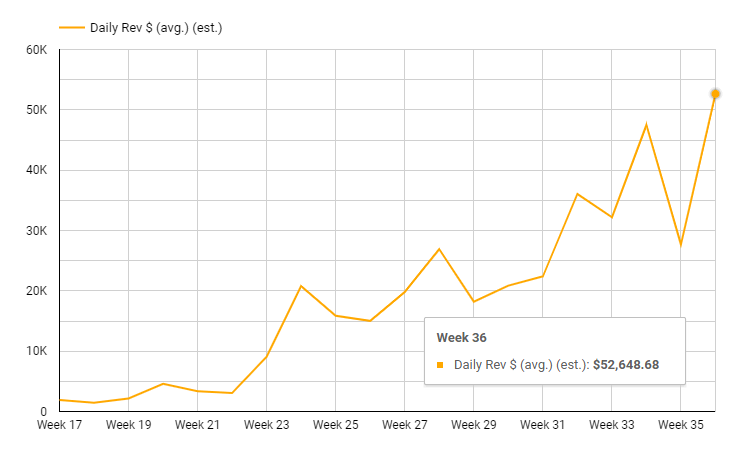 Daily network revenues averaged $52,649 a day in USD terms, an increase of 90.30%.