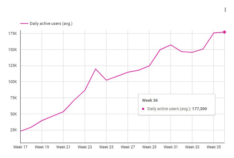 Last week we saw an explosive week over week (w-o-w) growth of 16.64%. This week, Polygon PoS’ growth increased by 0.73%, bringing DAU to 177,300 active addresses per day.
