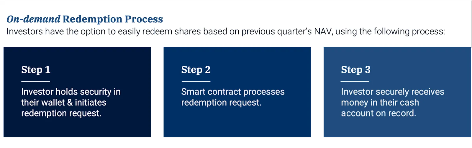 Investors in the SCOPE feeder fund will generally have the option to redeem their shares on demand at the previous quarter’s Net Asset Value per share, through a fully digital process, and with no transaction fees from Securitize*.