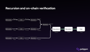 In the first testnet for Polygon zkEVM, there was one proof per batch. In the second testnet, each batch is further aggregated into a single, bite-sized proof. Recursion—or recursive composition—is the technique that allows for one single validity proof to attest to the correctness of other validity proofs.In a ZK environment, recursion generates something that is otherwise rare: An increase in throughput while also reducing latency. In most applications, time and space are usually a tradeoff. So how is this possible?For recursion to be practical, it must satisfy a cryptographic primitive called incrementally verifiable computation. A cryptographic primitive is a building block for a cryptographic protocol. Which is to say, a building block is only as useful as its application.The goal of a ZK-powered scaling solution is to minimize on-chain data and the cost-intensive computational effort required to validate it. Incrementally verifiable computation is valuable when deployed with ZK SNARK proofs, because ZK SNARKs are shrink rays. They are by nature succinct.