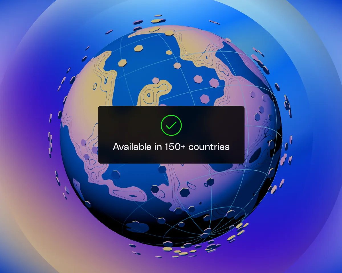 Globally integrated with crypto exchanges and on- and off-ramps, with crypto-to-fiat conversions in 150+ countries.