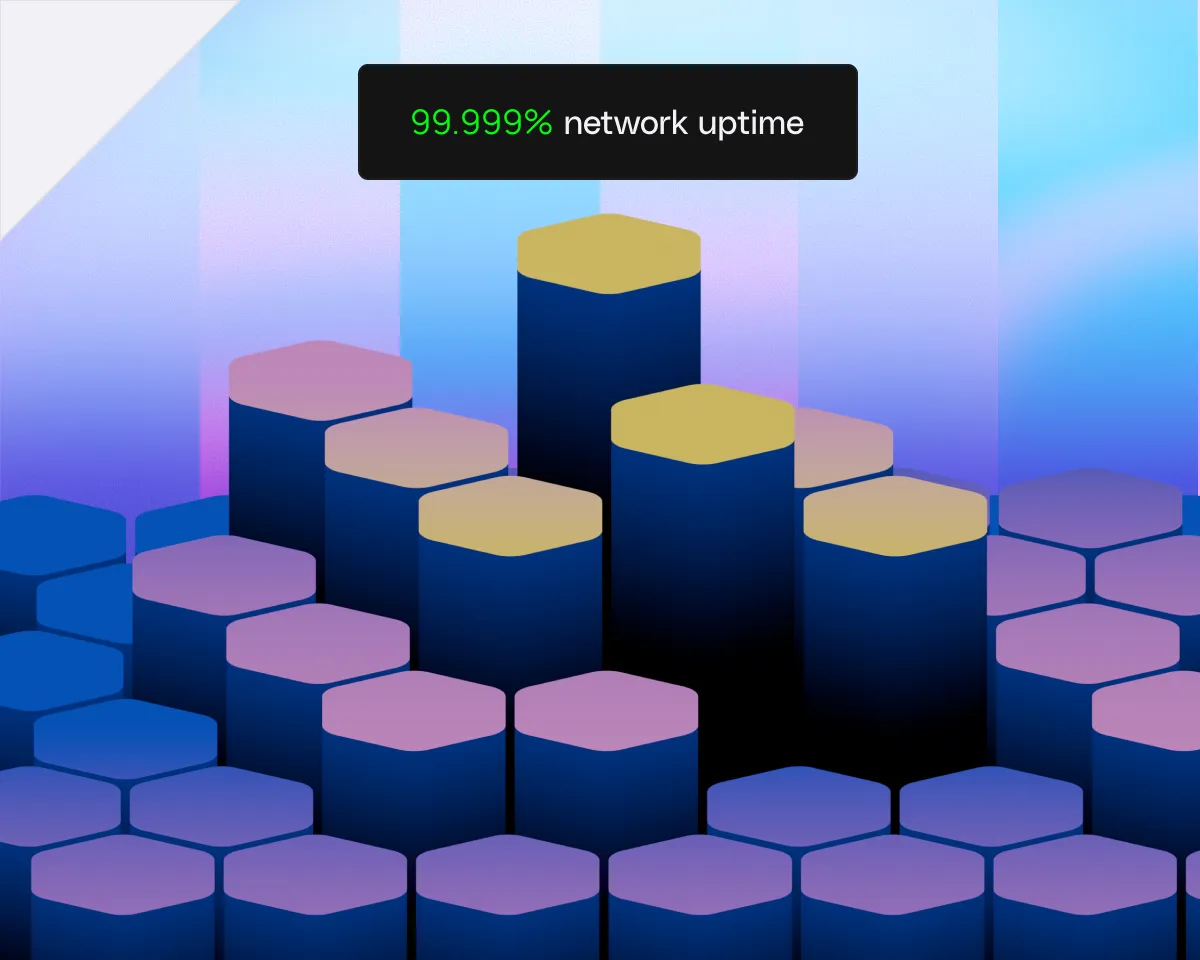 All upside, no downtime. Polygon is a battle-tested rock of stability that has 99.999% network uptime. 2s blocktimes for near-instant finality and no reorgs.